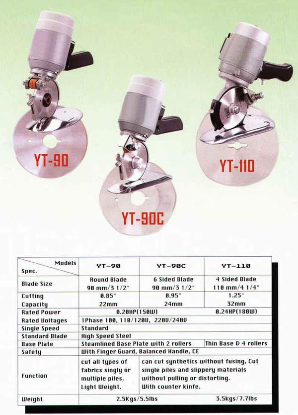 | 功能特色 | 輕巧好操作,適用各類布料,單層或多層裁切 | 可裁切合成布料不易熔黏,適合裁切單層或滑布料,附對刀 | |